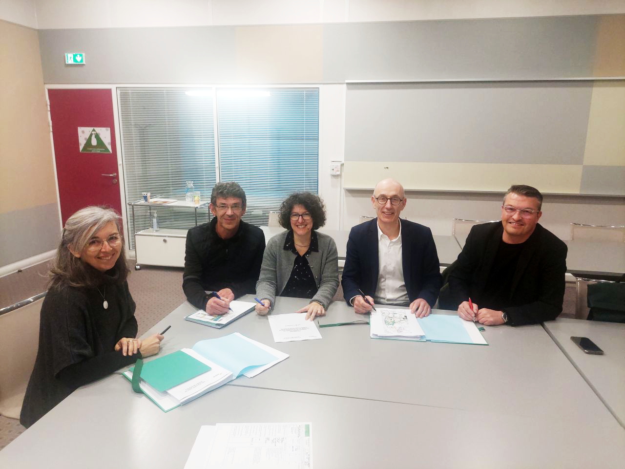 De gauche à droite : Soizic Nué, Cheffe de projet chez Territoires Rennes, Jérôme NICOLAS, Directeur Général de Coop de Construction, Sophie Donzel, Directrice Générale de Neotoa, Antoine Monnerie, Directeur Général de Territoires, et Samuel Guilleux, Directeur de Région Legendre Immobilier